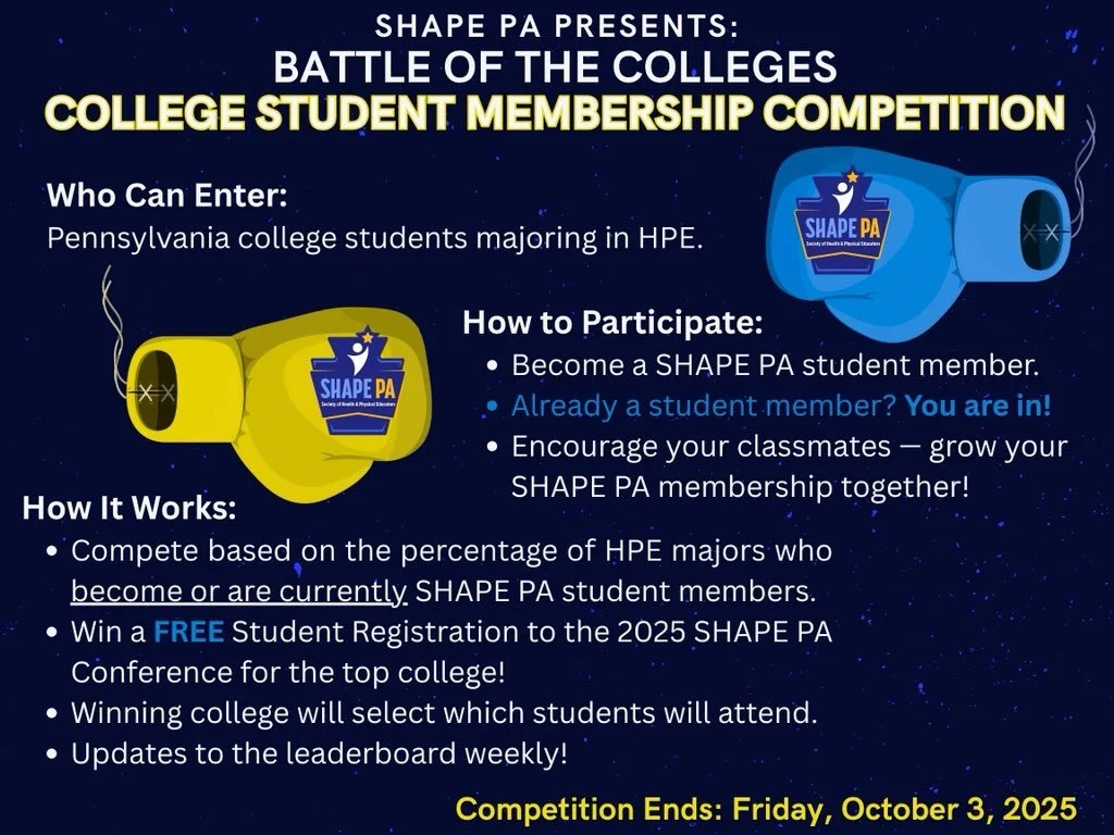 Winning college gets a FREE student registration to the 2025 SHAPE PA Conference!